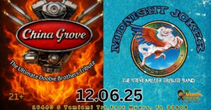 China Grove & Midnight Joker - Doobie Brothers/Steve Miller Tribute at Mango Rita's Rhythm Housesat06dec8:00 pm8:00 pm(GMT-05:00) Mango Rita's Rhythm House, 16440 S Tamiami Trail