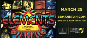 Elements: The Ultimate Earth, Wind & Fire Tribute - Barbara B. Mann Performing Arts Hallwed25mar8:00 pm8:00 pm(GMT-04:00) Barbara B Mann Performing Arts Hall, 13350 FSW Pkwy, Fort Myers