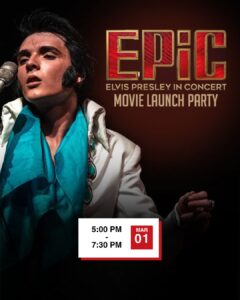 Epic - Elvis Presley in Concert Movie Launch Party • Giuseppe and the Lion Ristorantesun01mar5:00 pm5:00 pm(GMT-05:00) Giuseppe and the Lion Restorante, 1585 Pine Ridge Rd
