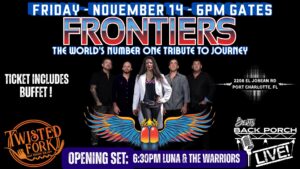 Frontiers - World's #1 Tribute to Journey (VIP Avail) + Luna & The Warriors • The Twisted Forkfri14nov6:30 pm6:30 pm(GMT-05:00) The Twisted Fork, 2208 El Jobean Rd