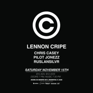 Lennon Cripe w/ Chris Casey, Pilot Jonezz, RuslanSilvr - Oscurasat15nov7:00 pm7:00 pm(GMT-05:00) Oscura, 816 Manatee Ave E