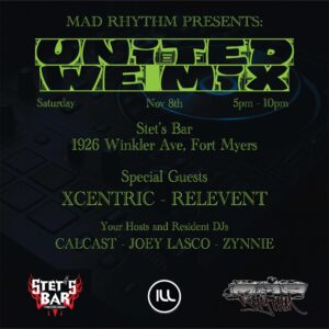 Mad Rhythm Presents United We Mix • 5 DJ's • Stet's Bar (Fort Myers)sat08nov5:00 pm5:00 pm(GMT-05:00) Stet's Bar, 1926 Winkler Ave