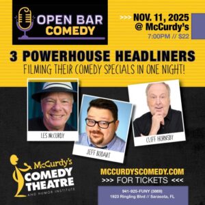 Open Bar Comedy at McCurdy's Comedy Theatre - 3 Powerhouse Headlinerstue11nov7:00 pm7:00 pm(GMT-05:00) McCurdy's Comedy Theatre, 1923 Ringling Blvd