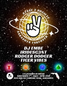 Stage 2 Society Sarasota Takeover • DJ Embe • Iridesc3nt • Rodger Dodger • Tiger Vibes - La Locanda Di Diegofri07nov9:00 pm9:00 pm(GMT-05:00) La Locanda di Diego, 4141 S. Tamiami Trail Unit 10