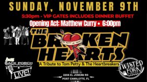 The Broken Hearts - A Tribute to Tom Petty (VIP Avail) + Matthew Curry • The Twisted Forksun09nov6:00 pm6:00 pm(GMT-05:00) The Twisted Fork, 2208 El Jobean Rd