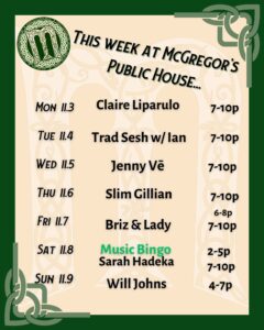 Will Johns - McGregor's Public House - Fort Myerssun09nov4:00 pm4:00 pm(GMT-05:00) McGregor's Public House, 13499 S. Cleveland Ave, Suite III